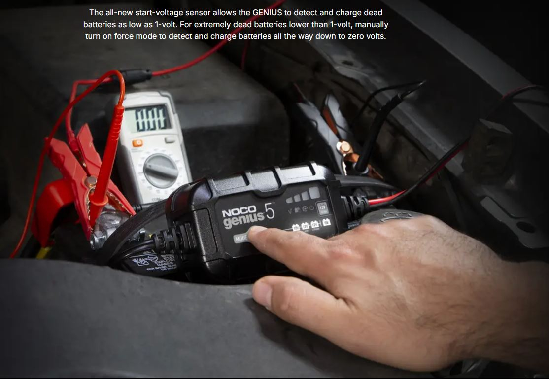 NOCO Genius 5 este un redresor inteligent conceput pentru încărcarea și întreținerea bateriilor de 6V și 12V, utilizate pe motociclete, autoturisme, ATV-uri, bărci sau echipamente cu acumulatori de capacitate mică și medie. Cu un curent de încărcare de 5A și algoritmi electronici de control, dispozitivul optimizează procesul în funcție de starea bateriei și temperatura mediului, reducând riscul de deteriorare sau supraîncărcare.
