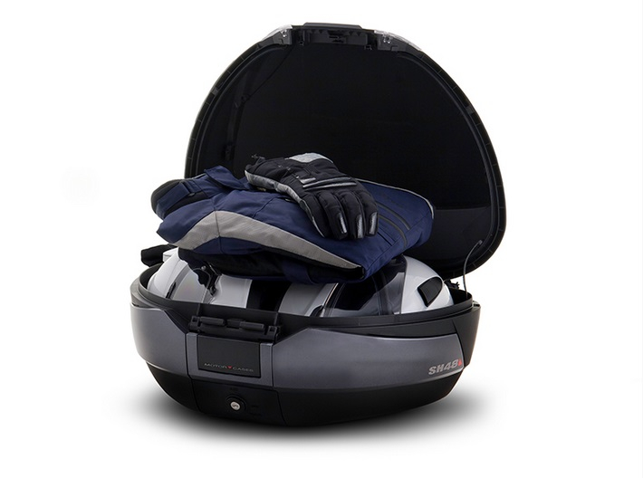 SH48 premium top case with two modular helmet capacity. Backrest, upper rack, brake light, inner bag and colors to fit SH36 available. Plate included.