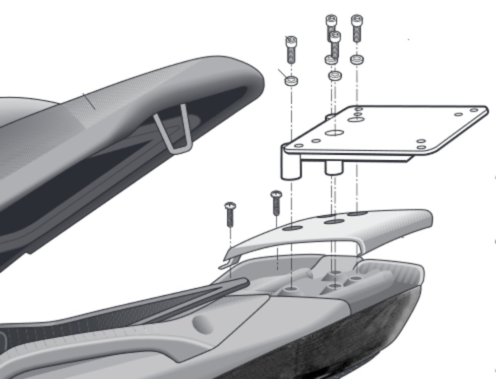 Pentru a monta topcase-ul pe bicicletă este necesar să adăugați la fitingul superior, placa inclusă în carcase SHAD (cu excepția TR48/TR37). Compatibil cu plăci de montare mici (D1B29PA), medii (D1B40PA) și mari (D1B481PA), valabile pentru toate topcasele SHAD și SHAD TERRA. ATENTIE: garnitura superioara nu este compatibila cu placa de montare din aluminiu (D1BTRPA).