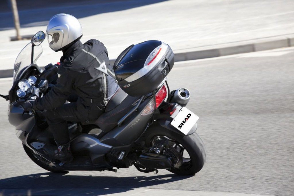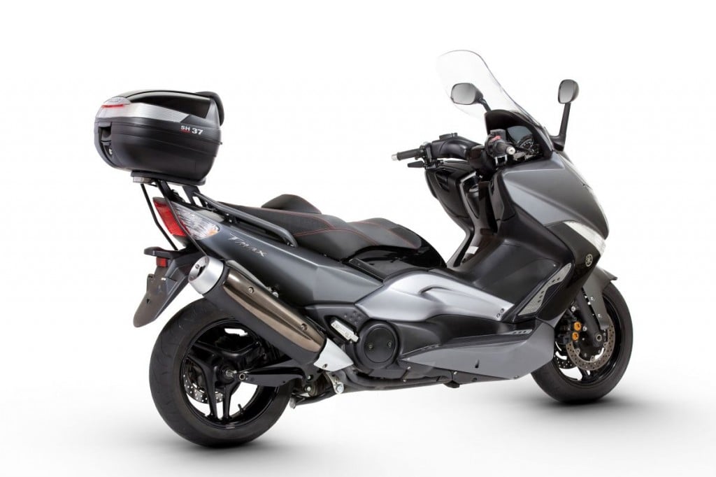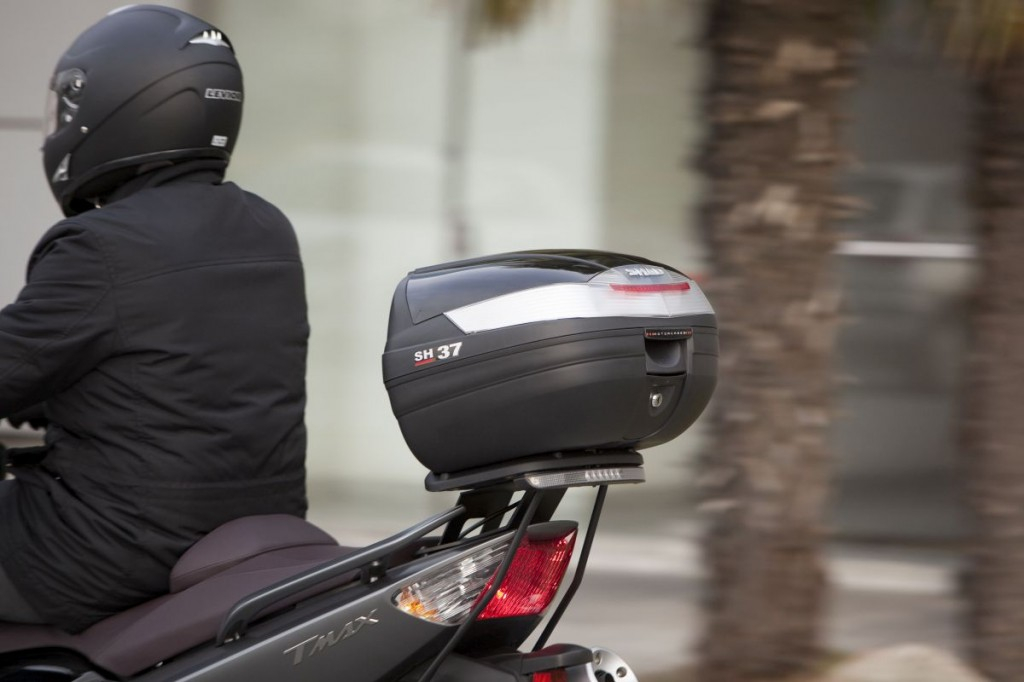 SH37- ideal choice for maxiscooters. Two jet helmets capacity (37lts). Backrest, brake light and color covers available as accessory. Plate included.